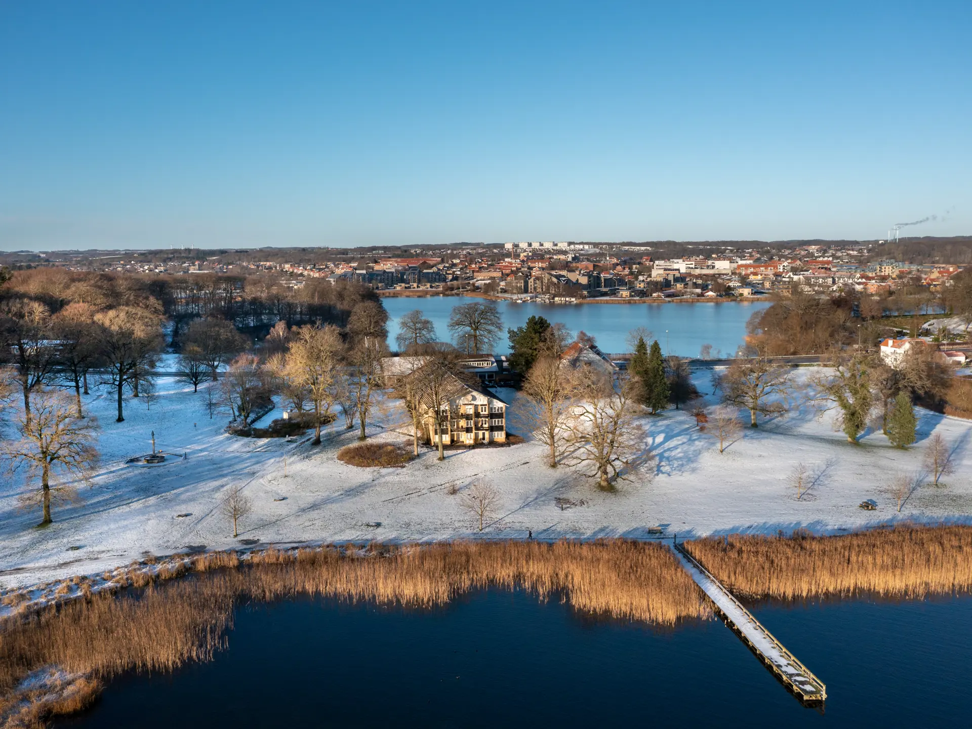 Hotel Skanderborghus ligger i de flotteste rammer og naturskønne omgivelser i Dyrehaven i Skanderborg med udsigt til Skanderborg Sø.
