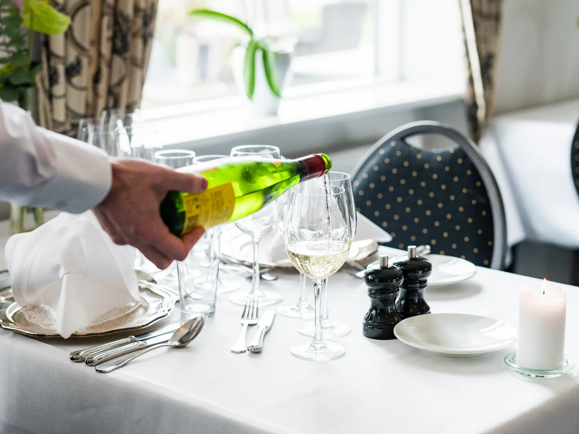 • 1 x Restaurantchefens vinmenu med årgangsvine - 1 glas pr ret.