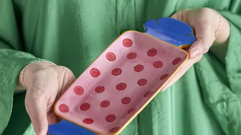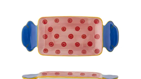 Bloomingvilles Caramella serveringsfad er mere end bare et fad. Det er et kunstværk formet som et stykke slik, der bringer farve og liv til både hverdagens og festens måltider. Hvert fad er prydet med håndmalede detaljer, hvilket gør hver enkelt unik og fuld af personlighed.