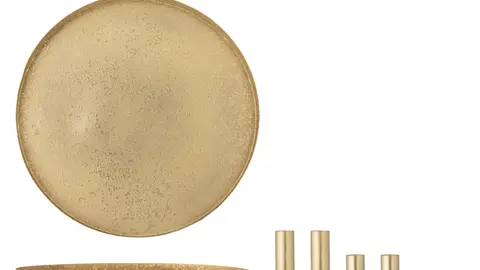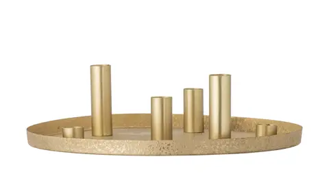 Elegant lysestage i metal med smuk guldfinish. Designet er fleksibelt og kan bruges hele året – både som adventsstage i julen og som dekorativt element i hjemmet.
