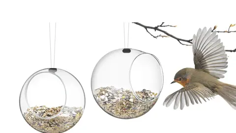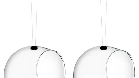 Sæt med 2 stk. klare glaskugler med ophæng, der kan monteres på en gren eller under et tagudhæng.