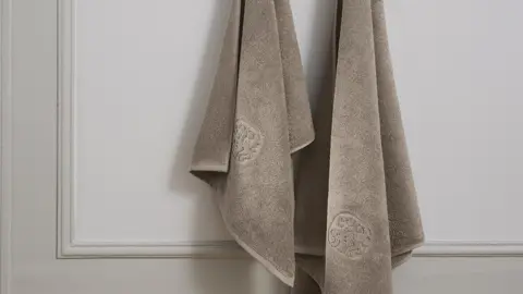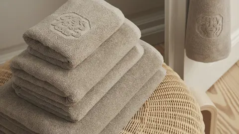 Georg Jensen Damasks klassiske Damask Terry håndklæder med indvævet logo er håndklæder i fineste kvalitet, vævet på en jacquardvæv og i kæmmet bomuld, der giver styrke og blødhed, mens de dobbelttvundne garner giver et roligt og glat design.