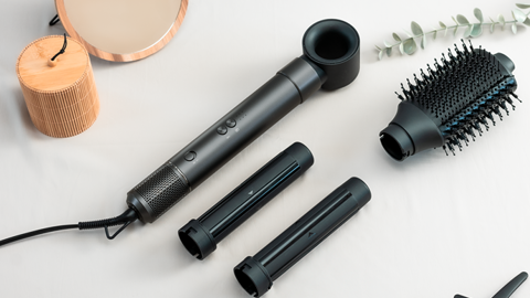 4-i-1 tilbehør: føn, 2 krøllehoveder & volumebørste