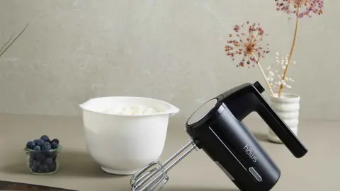 Slip for besværet med ledninger og stikkontakter – denne elegante, sorte håndmixer giver dig frihed i køkkenet.