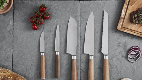 De smukke valnøddehåndtag er ikke kun ergonomiske, men tilføjer også et elegant udtryk til din køkkenoplevelse. Knivene skal vaskes op i hånden for at bevare deres skønhed og ydeevne.