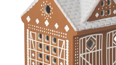 Husene har en varm brun mat udvendig overflade, samt hvid glaseret mønstret dekorationer.