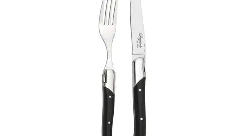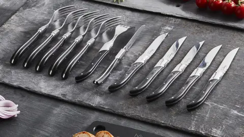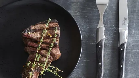 Giv middagen et strejf af fransk elegance med dette smukke sæt steakknive og gafler fra Laguiole.