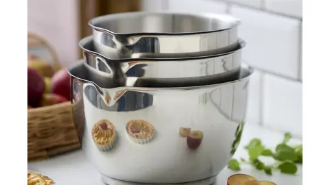 Flot og eksklusivt sæt i stål af den kendte og elskede Margrethe-skål - 1,5 + 2 + 3 liter.