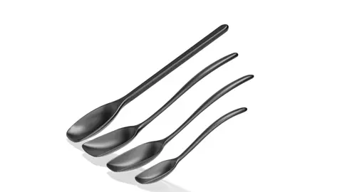 Sæt med 4 Rosti-grydeskeer i forskellige udformninger.