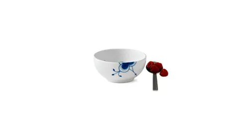 En smuk håndmalet skål med forstørret nøddeblomst udenpå og palmette indeni. Perfekt til morgenmad, snacks eller små serveringer.