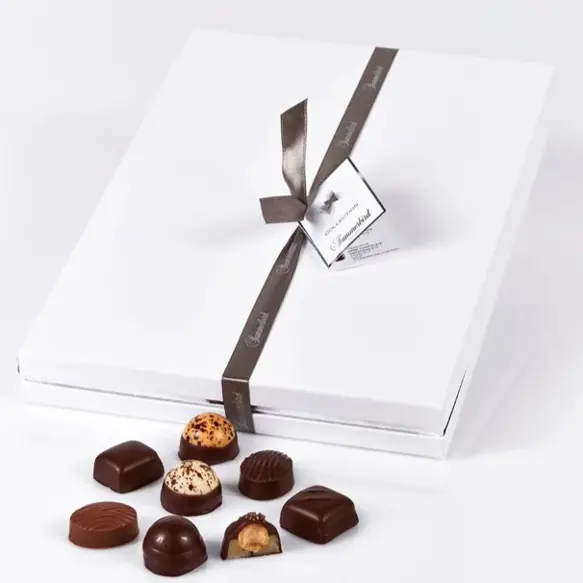 En klassisk og smuk gaveæske fra Summerbird fyldt med 48 håndlavede, økologiske chokolader.