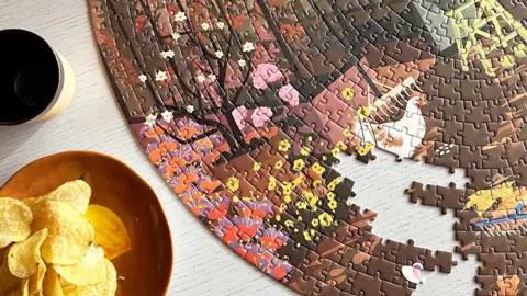 Det runde puslespil med 1000 brikker er en skøn familieaktivitet året rundt.